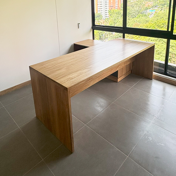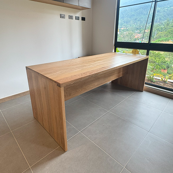 Escritorio de roble macizo de 40mm con acabado en laca mate.