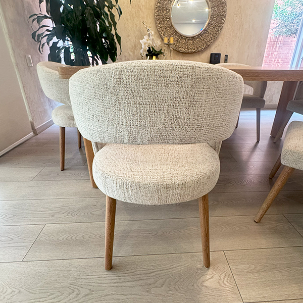 Sila fabricada en madera de roble natural con acabado mate, esta tapizada en tela gris la cual puedes elegir a tu gusto. *diseño exclusivo Armadillo Mobiliario.